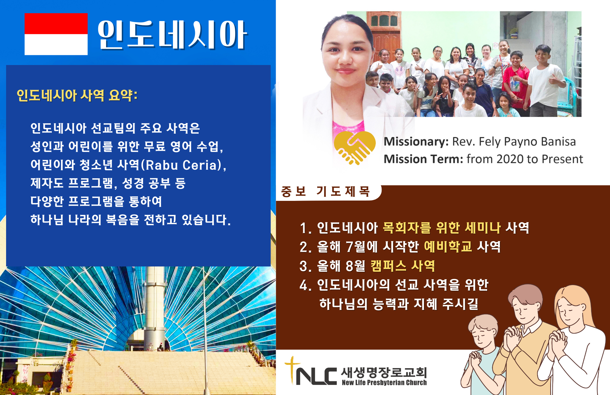 인도네시아 Fely Payno Banisa 선교사님을 위해 기도해 주시기 바랍니다.